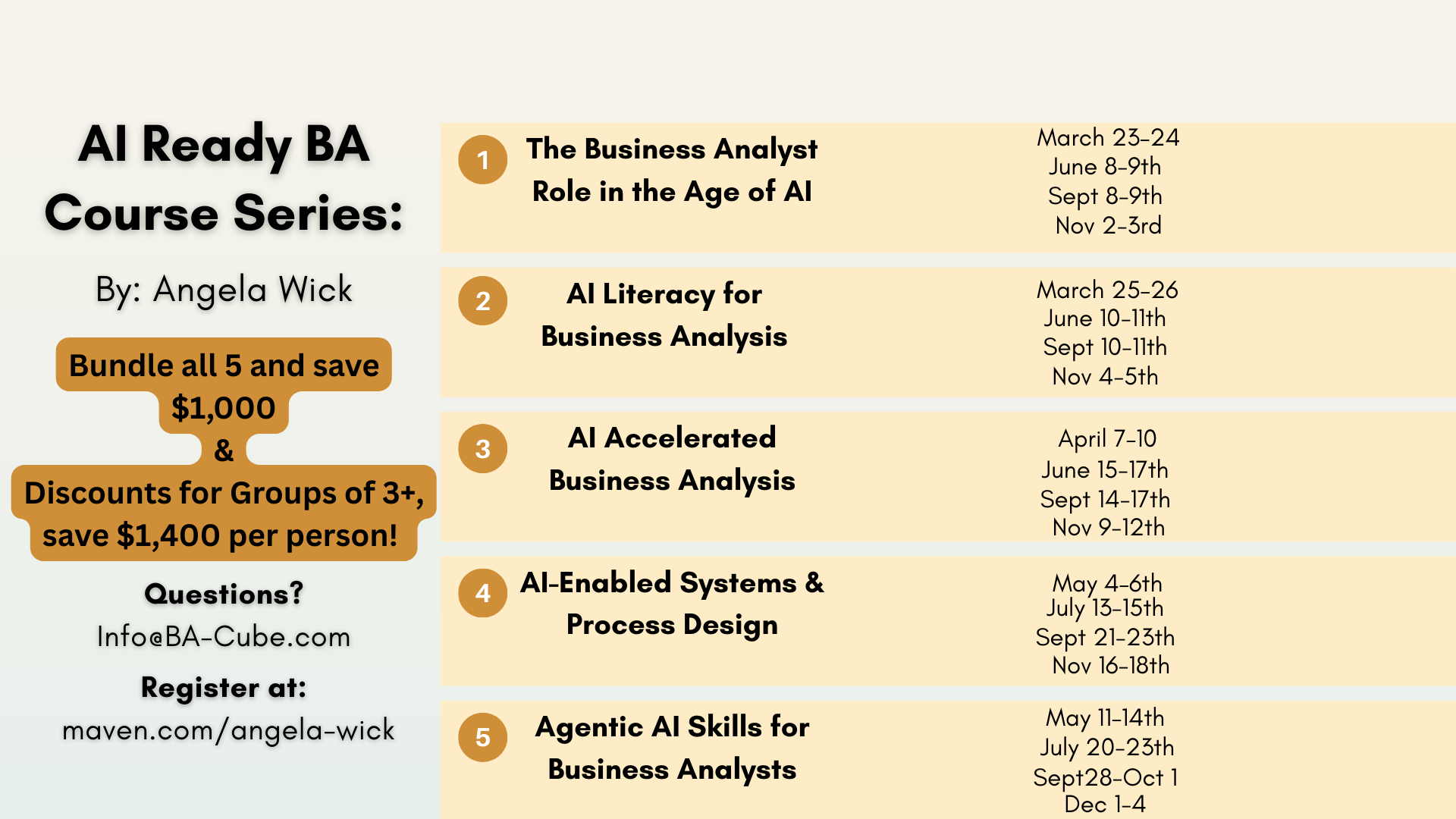 That’s exactly why we created the AI-Ready Business Analyst Live Course Series.